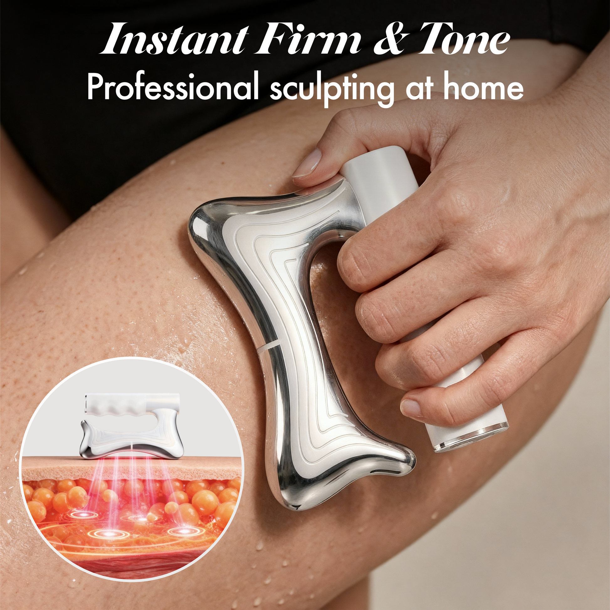 Most devices only vibrate or massage the surface. Feels nice, does nothing. Evero® uses Heat + EMS technology that penetrates deep into the fat layer. Real sculpting, not temporary smoothing.